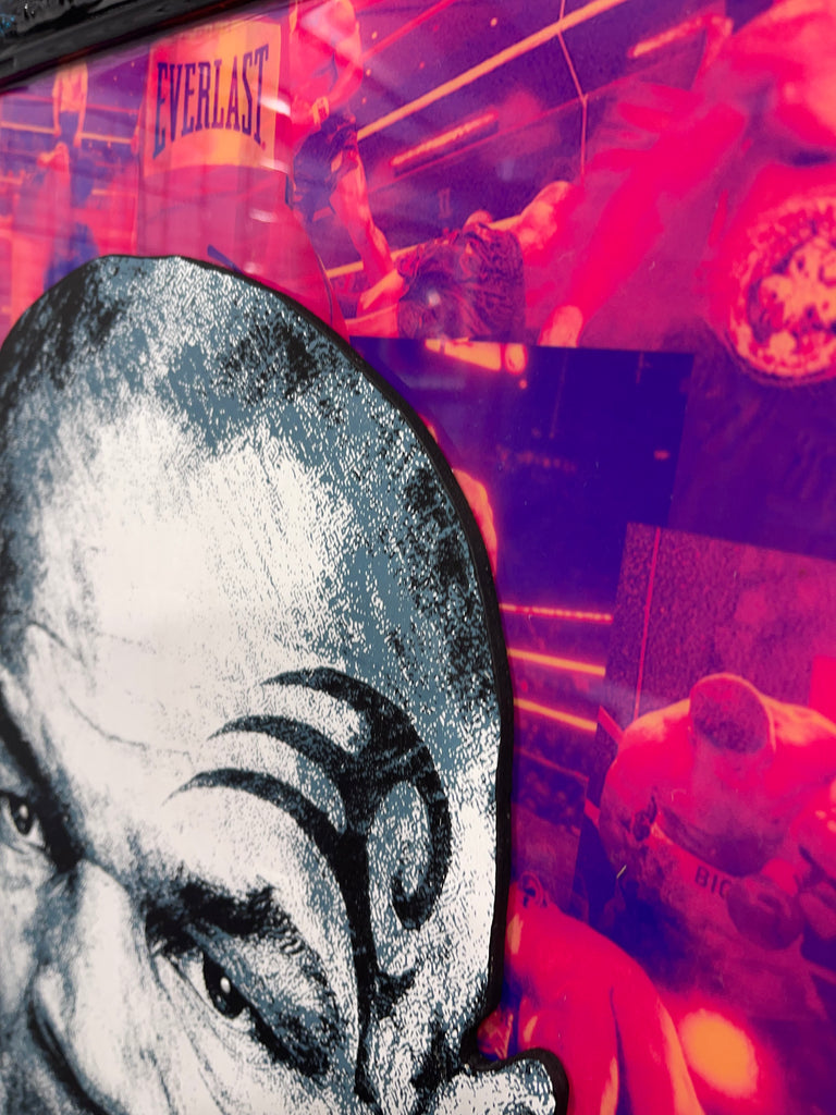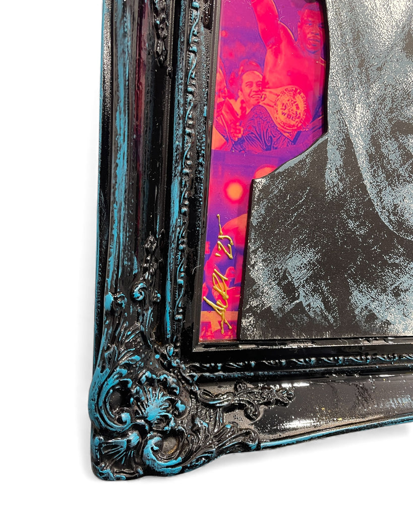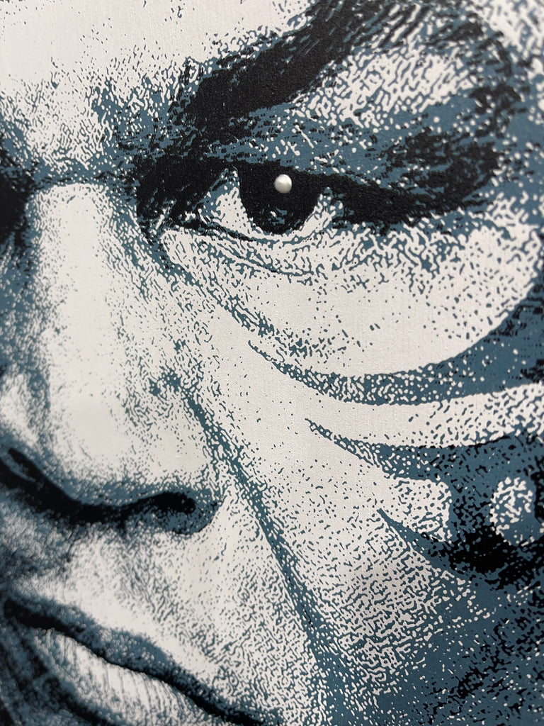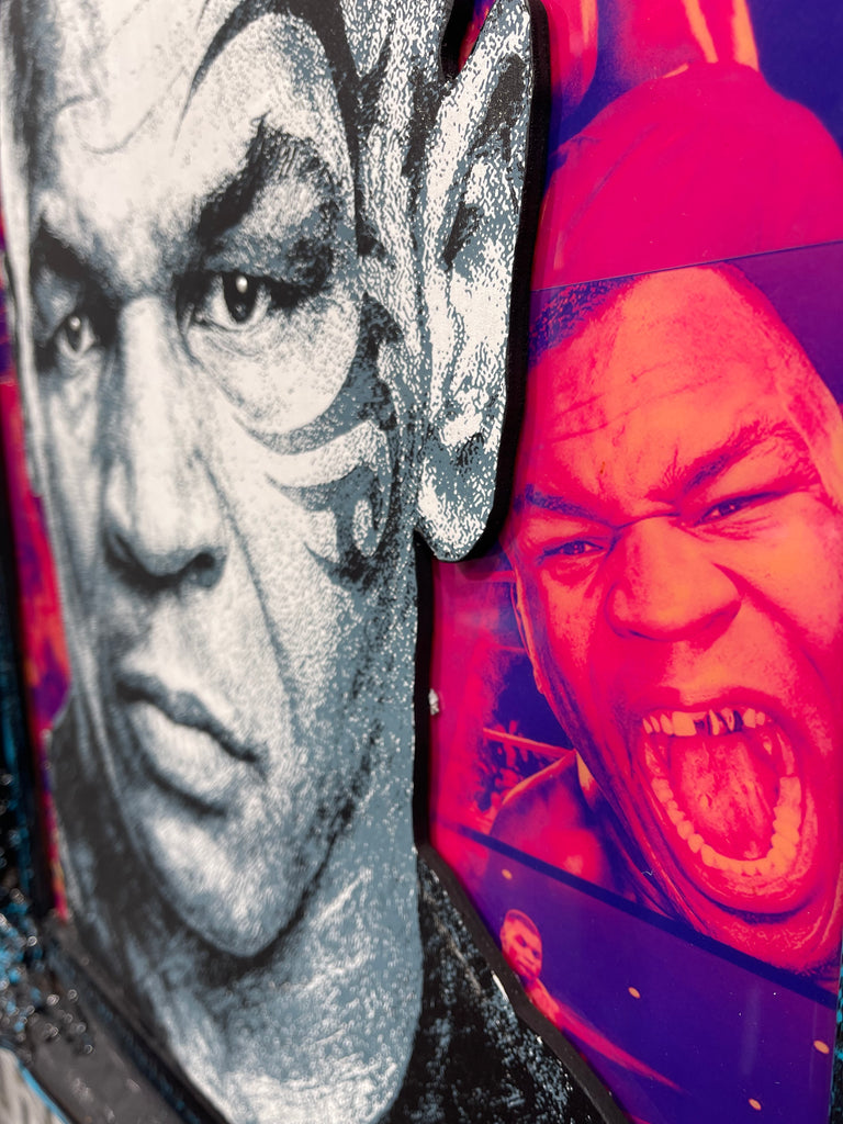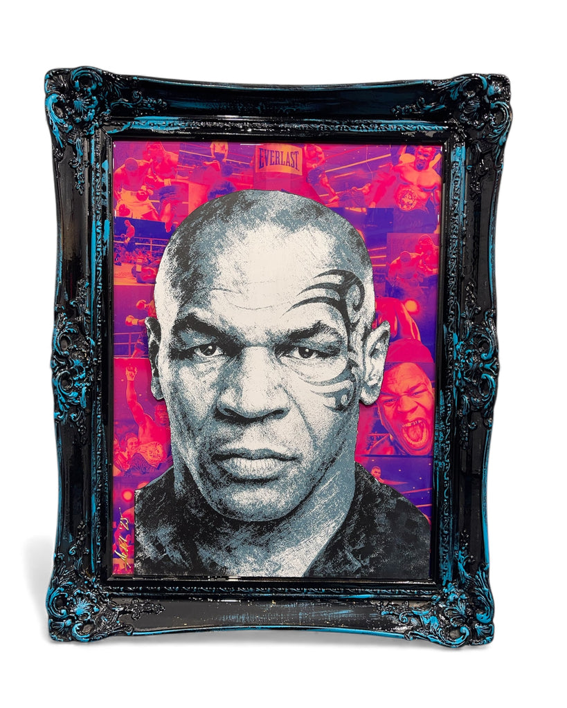 Mike Tyson - is 3D original artwork combined painting,hand pulled screen print, woodworking. Framed in antique frame.