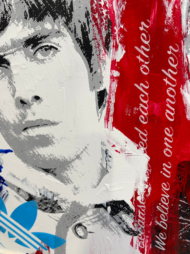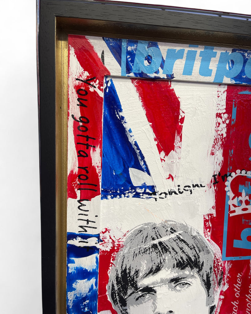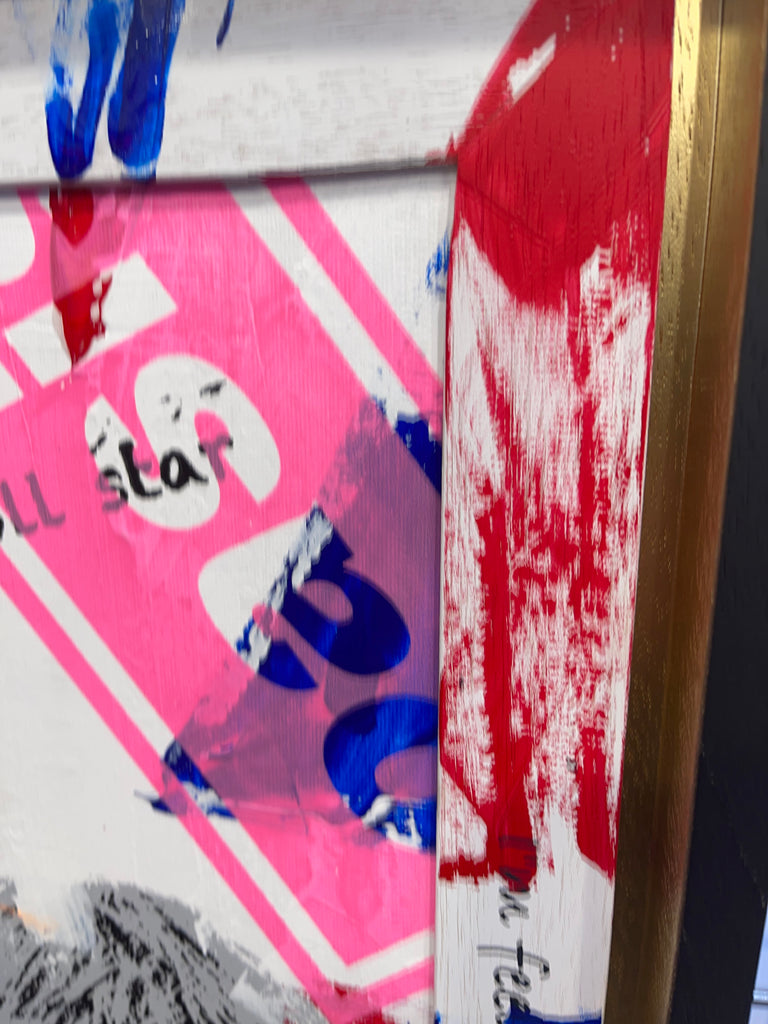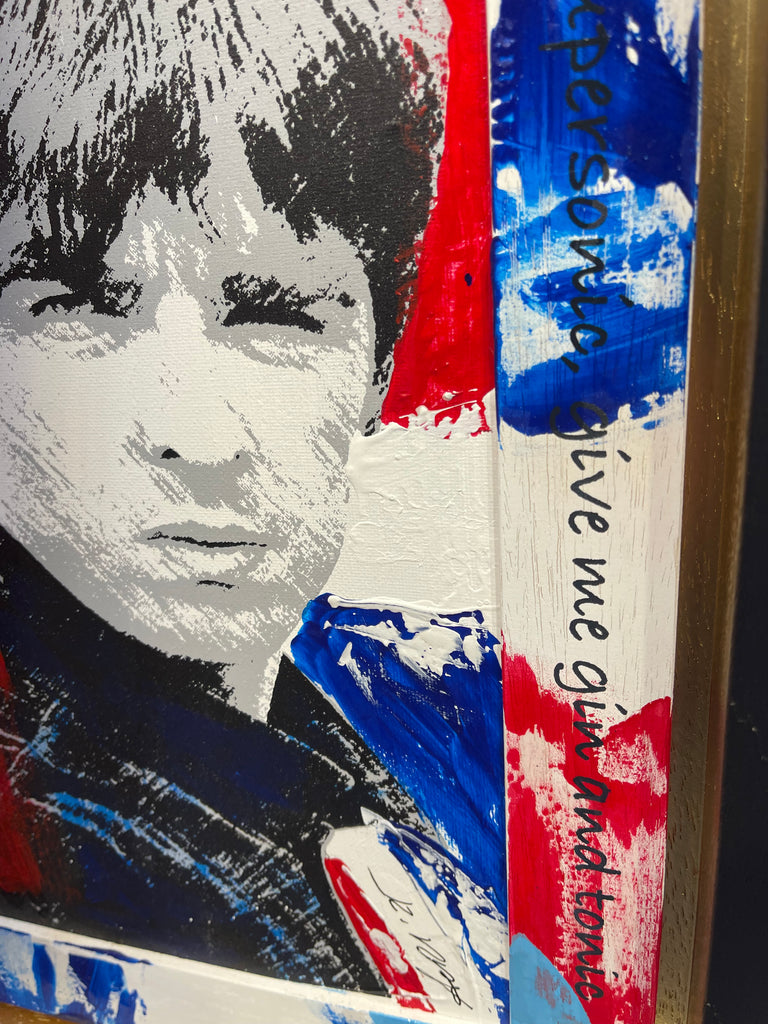 Oasis - is a special edition artwork combined painting, spray painting and hand pulled silkscreening on canvas board. Framed in a double custom made frame.